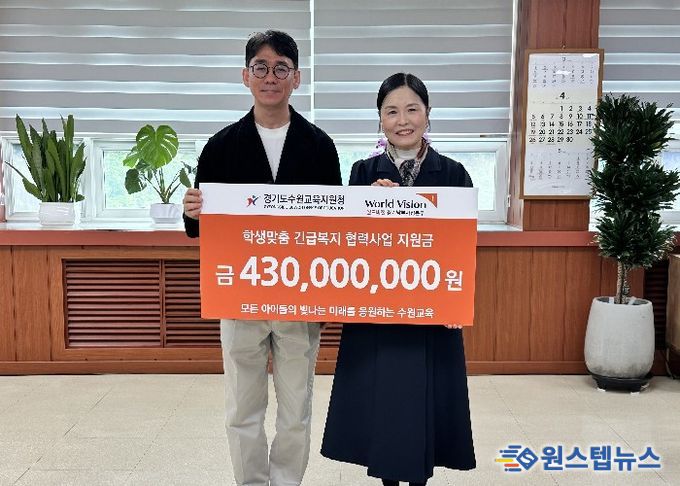 원스텝뉴스 이병희 기자 | 수원교육지원청은 오는 4월 28일, 영화청사 교육장실에서 월드비전 경기남부사업본부와 함께‘2026 학생맞춤 긴급복지 지원사업 지원금 전달식’을 개최한다고 밝혔다.