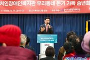 원스텝뉴스 이병희 기자 | 용인특례시는 12일 용인시처인장애인복지관이 한해 동안 나눔을 실천한 후원자와 자원봉사자를 위한 ‘우리동네 온기가득 송년회’를 열었다고 밝혔다. 이 행사에 참석한 이상일 용인특례시장은 장애인복지를 위해 헌신한 후원자와 자원봉사자, 복지관 관계자들을 격려하고, 감사의 마음을 나눴다. 이상일 시장은 “처인장애인복지관은 장애인 복지 수준 향상을 위해 훌륭한 활동을 해왔다”며 “이 자리에 계신 후원자와 자원봉사자 여러분의 헌신적인 노력은 장애와 비장애의 벽을 허물고, 장애인에게 희망을 전달했다”고 말했다. 이 시장은 “용인특례시는 장애인 복지 활동과 정책을 선도적으로 운영하고 있고, 장애인을 위한 시설개선에도 적극 노력하고 있다”며 “장애인복지관에 많은 후원이 모이고 있고, 이 마음이 용인특례시를 따뜻한 공동체 사회로 만들고 있다”고 했다. 이날 행사에는 이상일 시장을 비롯해 지역 주요 내빈, 후원자, 자원봉사자, 복지관 이용자 등 200여 명이 참석했다. 행사는 식전 공연을 시작으로 송년회 영상 시청, 송년사 및 축사, 유공자 표창, 응원 메시지 퍼포먼스 순으로 진행
