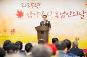 원스텝뉴스 이병희 기자 | 남양주시의회는 11일 농업기술센터 3층 대강당에서 열린 ‘2025년 남양주시 농업인의 날’기념식에 참석해 축하의 인사를 전했다. 이날 행사는 농업인의 날을 맞아 농업과 농촌의 가치를 되새기고, 한 해 동안 지역 농업 발전을 위해 애쓴 농업인들의 노고를 격려하기 위해 마련됐으며, 조성대 남양주시의회 의장 및 시의원, 주광덕 시장, 농업인단체 임원 등 150여 명이 참석한 가운데 열렸다. 기념식은 식전 공연을 시작으로 △내빈 소개 △농업인대상 및 농업유공자 시상 △격려사 및 축사 △풍년맞이 시루떡 커팅식 △기념촬영 순으로 진행됐으며, 야외에는 지역 농특산물의 우수성을 알리기 위한 남양주 농특산물 홍보‧체험 부스가 마련됐다. 조성대 의장은 “기후변화, 고물가, 대미 통상협상 등 최근 농업을 둘러싼 녹록지 않은 여건에도 새로운 기술을 배우고 협력하며 지속가능한 농업의 길을 스스로 개척해 나가고 계시는 농업인들께 깊은 감사와 존경을 보낸다”며, “흙에서 생명을 키워 사람을 살리는 농업의 본질처럼 여러분의 손끝에서 피어난 땀방울이 우리의 생명과 경제를 지탱하고 있다”고 강조했다. 이