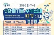 원스텝뉴스 이병희 기자 | 파주시는 2026년 1월 1일부터 관내 생활폐기물(쓰레기) 수집·운반 대행업체가 변경됨에 따라, 시민에게 정확한 정보를 안내하고 현장 운영이 원활히 정착될 수 있도록 홍보와 안내를 강화하고 있다고 밝혔다. 이번 대행업체 변경으로 지역별 담당 업체가 달라졌으며, 특히 문산읍의 경우 세부 지역(리 단위)에 따라 담당 업체가 서로 다를 수 있어 시민들의 각별한 주의가 필요하다. 변경된 담당 업체 정보는 파주시청 누리집에서 확인하거나, 자원순환과 청소행정팀 및 민원전화상담실(콜센터)로 문의하면 안내받을 수 있다. 파주시는 시민 혼선을 최소화하기 위해 변경 사항을 지속적으로 홍보하는 한편, 대행업체와 협력해 현장 안내를 강화하고 주민 문의에 신속히 대응해 나갈 계획이다. 심재우 자원순환과장은 “대행업체 변경 초기에는 일시적인 혼선이 발생할 수 있다”라며 “현장 점검을 강화해 수거 지연 등 문제를 신속히 해소하고 청소 행정이 조기에 안정될 수 있도록 노력하겠다”라고 밝혔다.