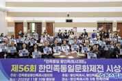 원스텝뉴스 천규영 기자 | 용인특례시는 10일 시청 컨벤션홀에서 민족통일 용인특례시협의회 주관으로 ‘민족통일 용인특례시대회와 제56회 한민족통일문화제전 시상식’이 열렸다고 밝혔다. 이날 행사는 한반도의 평화와 통일을 주제로 한 글짓기·웹툰·포스터·사진 공모전의 입상작을 시상하고, 유공회원에게 표창을 수여하고자 마련됐다. 민족통일 용인특례시협의회는 1981년 창립한 단체로 매년 태극기 나눔을 비롯해 지역사회 통일운동 의식 제고 등을 위한 다양한 활동을 벌이고 있다. 이날 협의회는 홍보자료 시청, 통일 관련 동영상과 남북 언어 차이에 대한 학습자료를 시청하고 간단한 통일 퀴즈대회를 거쳐 우수 작품 3개를 낭독했다. 이어진 시상식에서는 용인특례시장상 3명 등 총 36명이 수상의 영예를 안았다. 유한종 민족통일 용인특례시협의회장은 “민족의 염원인 한반도 평화통일을 위해 어려운 여건 속에서도 적극 지원해 주시는 이상일 시장님께 감사드린다”며 “대한민국 통일의 그 날이 올 때까지 협의회 회원의 뜻을 한데 모아 더욱 적극 활동하겠다”고 했다. 이상일 시장은 “대한민국이 한국전쟁의 비극을