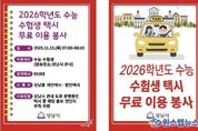 원스텝뉴스 이병희 기자 | 성남시는 오는 11월 13일 ‘2026학년도 대학수학능력시험’이 치러지는 수능 당일, 지역 내 26개 시험장(465개 시험실)에서 시험을 치르는 1만2,533명의 수험생을 위해 특별 교통 대책을 시행한다. 개인택시와 법인택시 총 950여 대가 오전 7시부터 8시까지 ‘2026학년도 수능 수험생 택시 무료 이용 봉사’ 표지를 부착하고, 수험생을 대상으로 시험장까지 무료 운행 서비스를 제공한다. 수험생은 성남콜택시(031-755-4000)를 통해 택시를 호출하면 시험장까지 무료로 이동할 수 있다. 이마트성남점, 은행시장, 모란역 8번 출구, 성남종합버스터미널, 미금역 1번 출구 등 5곳의 주요 택시정류장에서는 수능 수험생이 무료 택시를 바로 탑승할 수 있도록 운영된다. 시는 수험생의 대중교통 이용 편의를 위해 등교 시간대인 오전 6시부터 8시 10분까지 광역·시내·마을버스 109개 노선을 집중 배차해 운행한다. 시험장 주변 교통 혼잡을 줄이기 위해 불법 주정차 차량에 대한 단속을 강화하고, 수험생 차량의 원활한 이동을 방해하는 경우 즉시 견인 조치할 예정이다. 이