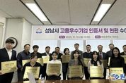 원스텝뉴스 이병희 기자 | 성남시는 어려운 경제 여건 속에서도 지역 일자리 창출에 기여한 18개 기업을 ‘2025년 고용우수기업’으로 선정하고, 10일 인증서와 현판을 수여했다. 이날 오후 3시 성남시청 재정경제국 회의실에서 열린 수여식에는 선정된 기업의 대표및 실무책임자들이 참석해 고용우수기업 인증서(유효기간 2년)와 현판을 전달받았다. ‘성남시 고용우수기업 인증제’는 기업의 고용 확대를 유도하고 지속 가능한 성장을 지원해 지역경제를 활성화하기 위한 제도로, 일반 고용우수기업과 청년 고용우수기업 두 분야에서 기업을 선정해 다양한 인센티브를 제공하고 있다. 시는 지난 8월 서류심사와 현장조사를 거쳐 일반 고용우수기업 9개사와 청년 고용우수기업 9개사를 최종 선정했다. 2025년 일반 고용우수기업으로는 △에스에스티랩 △우보재난시스템 △라미나 △메디에이지 △테라시온바이오메디칼 △에이텍시스템 △에이텍 △뉴빛테크놀러지 △오래온라이프사이언스가, 청년 고용우수기업으로는 △비엔에스테크 △알에프코어 △우노실리콘 △아이브릭스 △제노레이 △아와소프트 △에이텍모빌리티 △한솔생명과학 △아이렌이 선정됐다. 선