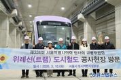원스텝뉴스 이병희 기자 | 서울특별시의회 교통위원회(위원장 이병윤, 국민의힘, 동대문구1)는 제334회 임시회 기간인 3월 10일 서울 송파구 거여동에 위치한 위례선(트램) 차량기지를 방문하여 공사 추진 현황을 보고받고 시설 및 차량 점검을 진행했다. 위례선 트램은 마천역에서 복정역과 남위례역을 잇는 연장 5.4km 구간에 12개 정거장을 조성하는 서울시의 핵심 교통망 확충 사업으로, 총사업비 3,503억 원이 투입되어 2021년 2월부터 공사를 시작했으며 올해 연말 준공 예정이다. 위례선은 국내 최초로 도입되는 ‘무가선’ 방식으로, 대용량 배터리(179kWh)를 통해 공중전선 없이 운행되어 소음이 적고 도시 미관이 우수한 것이 특징이다. 아울러 휠체어 이용자가 평지처럼 탑승할 수 있는 ‘저상 구조’와 열차 진출입을 색상으로 알리는 ‘트램 연동형 경관조명’ 등 최첨단 시민 편의 시설이 적용된다. 이날 현장 방문은 이병윤 위원장을 비롯한 교통위원회 소속 의원과 도시기반시설본부 본부장, 도시철도국장 등이 참석했으며, 차량기지 현장에서 위례선 도시철도 건설공사 추진현황을 보고받은 후 관제실과 차량기지, 초도편성 차량