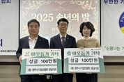 원스텝뉴스 이병희 기자 | 광주시 기업인협회 광남지회 김영선 회장은 지난 15일 열린 ‘2025 송년의 밤’ 행사에서 광남1동과 광남2동에 각각 100만 원씩, 총 200만 원의 이웃돕기 성금을 기탁했다. 이번에 전달된 성금은 지역 내 어려운 이웃을 지원하는 데 사용될 예정으로 광주시 기업인협회 광남지회는 지역경제 활성화는 물론 매년 꾸준한 나눔 활동을 통해 지역사회에 따뜻한 정을 전해오고 있다. 이날 김 회장은 “지역 기업인으로서 지역사회와 함께 성장하고 상생하는 것이 무엇보다 중요하다고 생각한다”며 “이번 기탁이 도움이 필요한 이웃들에게 따뜻한 연말을 보내는 데 작은 보탬이 되길 바란다”고 말했다. 이에 대해 전동진 광남1동장과 정경아 광남2동장은 “매년 변함없이 나눔을 실천해 주시는 광주시 기업인협회 광남지회에 깊이 감사드린다”며 “기탁해 주신 성금은 도움이 필요한 이웃들에게 소중히 전달하겠다”고 감사의 뜻을 전했다.