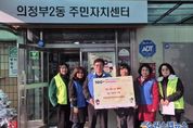원스텝뉴스 이병희 기자 | 의정부시 의정부2동주민센터는 12월 17일 의정부2동 지역사회보장협의체가 ‘100일간 사랑릴레이 배턴 잇기’에 동참해 취약계층을 위한 성금 20만 원을 전달했다고 밝혔다. 협의체는 올겨울에도 지역사회 돌봄을 강화하기 위한 의미 있는 걸음을 이어갔다. ‘겨울나기 지원’이 필요한 가구를 위해 온기 나눔 패딩을 전달하고 성금을 마련해 지원하는 등, 한 해의 마무리를 지역과의 상생으로 채웠다. 지명준 위원장은 “이번 성금이 어려움을 겪는 가정에 작은 보탬이 되길 바란다”며 “앞으로도 협의체가 지역사회와의 연결고리 역할을 충실히 수행하도록 최선을 다하겠다”고 전했다. 조미경 동장은 “연말을 맞아 ‘100일간 사랑릴레이 배턴 잇기’에 동참해주신 지역사회보장협의체에 감사드린다”며 “전달받은 성금은 지원이 필요한 분들을 위해 소중히 사용하겠다”고 말했다.