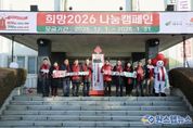 원스텝뉴스 이병희 기자 | 지난 12일 여주시와 경기 사회복지공동모금회는 연말연시 나눔문화 확산을 위한'희망2026 나눔캠페인'의 시작을 알리는 사랑의 온도탑 제막식을 개최했다. 이번 캠페인의 슬로건은 “행복을 더하는 기부, 기부로 바꾸는 여주”로 이충우 여주시장, 박두형 여주시의회 의장 및 시의원, 김효진 경기 사회복지공동모금회 사무처장 등 10여명이 참석하여 제막식과 슬로건 피켓팅을 통해 홍보활동을 진행했다. '희망2026 나눔캠페인'은 2025년 12월 1일부터 2026년 1월 31일까지 62일간 여주시 지정기탁 모금액 4억원을 목표로 각 읍면동 및 본청에서 모금을 접수하며, 목표액의 1퍼센트인 4백만원의 성금이 모금될 때마다 사랑의 온도탑의 온도가 1℃씩 올라간다. 집중모금기간동안 모금된 성금 등은 사회복지공동모금회를 통해 여주시 지정기탁금 계좌로 적립되어 관내 취약계층 및 사회복지시설 등을 위한 복지사업의 재원으로 소중히 사용될 예정이며, 많은 시민들의 관심과 참여를 촉구하는 뜻깊은 자리였다.