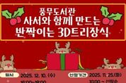 원스텝뉴스 천규영 기자 | 김포시 풍무도서관에서 초등학생을 대상으로 ‘사서와 함께 만드는 반짝이는 3D트리장식’을 오는 12월 10일 오후 4시부터 6시까지 운영한다. 이번 프로그램은 수강생의 학년에 따라 제작 도구의 난이도와 창작물이 구분되며, 참여 학생의 수준에 맞춘 맞춤형 체험활동으로 운영된다. 3D펜을 활용한 제작 경험을 통해 공간·입체 감각을 향상시키는 동시에 연말 크리스마스 시즌의 특색있는 분위기를 느낄 수 있다. 특히 풍무도서관 특화담당 사서가 직접 프로그램을 진행함으로써 안전하고 체계적인 지도가 이뤄질 것이다. 참여 신청은 11월 25일 오전 10시부터 풍무도서관 홈페이지에서 가능하며, 초등학생(1~6학년) 총 12명을 선착순 모집한다.