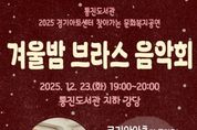 원스텝뉴스 천규영 기자 | 김포시 통진도서관은 오는 12월 23일 저녁 7시부터 8시까지 다가오는 연말을 기념하여 온 가족이 함께 즐길 수 있는 브라스 음악공연을 운영한다. 이번 공연은 경기아트센터에서 지원하는 ‘찾아가는 문화복지공연’ 사업으로, 김포시 북부권 시민들을 대상으로 일상 가까이에서 문화예술을 만나는 기회를 제공하고, 지역 간 문화 격차를 완화하고자 기획했다. 이번 공연은 금관 5중주로 구성된 앙상블 코리안아츠의 풍성한 선율로 채워질 예정이며, 코리안아츠는 대한민국 국제관악제 홍보대사와 2018년 평창동계올림픽 개막식 《승리의 팡파레》를 연주하는 등 화려한 이력을 지닌 팀으로, 클래식은 물론 영화와 대중음악 등 다양한 장르를 넘나들며 새로운 음악적 시도를 이어가고 있다. 도서관 관계자는 “이번 공연은 영화 및 애니메이션 음악공연으로 누구나 쉽게 즐길 수 있으며, 이번 공연을 통해 온 가족이 따듯한 연말을 보내길 바란다”라고 말했다.