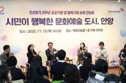 원스텝뉴스 천규영 기자 | 안양시는 13일 오전 10시 30분 평촌아트홀 1층 카페 아트림에서 ‘시민이 행복한 문화예술 도시, 안양’을 주제로 (재)안양문화예술재단과 민선 8기 3주년 공공·협력기관 순회 간담회를 개최했다. 이번 간담회는 민선8기 3주년을 맞아 안양시 문화예술 정책의 주요 성과를 공유하고, 현장 예술인과 시민의 의견을 직접 청취하기 위해 마련됐다. 행사에는 안양 지역 예술인과 문화단체 관계자, 시민 등 120여 명이 참석해 안양의 문화예술 비전과 발전 방향에 대해 활발한 소통의 시간을 가졌다. 간담회에서는 ▲시민이 주인공이 되는 ‘안양춤축제’ ▲생활문화로 피어나는 ‘마을축제 지원사업’ ▲지역·청년예술인 창작활동 지원 ▲안양박물관과 공공예술프로젝트(APAP) 등 시민이 함께 만들어가는 다양한 문화예술 사례가 소개됐다. 안양춤축제는 안양만의 축제가 아니라 관광형 축제로 거듭나고 있다. 지난 9월 3일간 열린 축제에는 총 14만2,000여명이 참여했는데, 이 중 40%가 타 시도민으로 추산된다. 춤축제 기간 열린 유스클럽챔피언십의 한 고등학생 참가자는 “대회 분위기가 생각보다 훨씬 뜨거웠고 행복했다”
