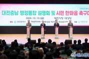 원스텝뉴스 이병희 기자 | 대전시의회 조원휘 의장은 12일 대전시청에서 개최된 대전충남 행정통합 설명회 및 시민 한마음 촉구대회에 참석해 지방소멸 위기 속에서 진행되는 대전·충남 행정통합 특별법안의 조속한 의결을 시민들과 함께 촉구했다. 이번 행사는 지역을 대표하는 단체·기관장, 민관협의체, 직능·사회단체 등 600여 명이 참석한 가운데 행정통합 홍보영상 상영을 시작으로 주요내빈 인사말씀, 행통통합 설명, 촉구문 낭독 및 퍼포먼스 순으로 진행됐다. 조원휘 의장은 “지방 소멸, 수도권 1극 체제라는 국가적 위기 속에서 행정통합은 대전과 충남의 생존과 미래에 대한 가장 현실적이고 강력한 해답이고, 두 지역이 힘을 모으면 인구 350만 명, 지역내총생산 200조 원의 대한민국 3대 생활권을 이뤄내는 것이다”라면서, “대전시의회는 행정통합특별위원회를 출범해 제도 개선 및 시민 공감대 형성 등 선제적 정책 마련에 총력을 기울여 왔고, 앞으로도 국회와 국가 차원의 협력을 도모해 충청권이 대한민국 100년을 이끌 새로운 성장 축이 되도록 시민들과 함께 힘을 모아 반드시 이뤄내겠다”고 말했다.
