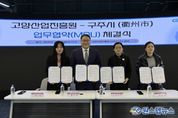 원스텝뉴스 이병희 기자 | 고양산업진흥원이 지난 10일 오전 고양 스마트시티센터 오픈랩에서 중국 절강성 구주시 상무국과 공동협력을 위한 업무협약(MOU)을 체결했다고 밝혔다. 협약 체결식에는 여민초 구주시 상무국 부국장, 란소방 공상연합회 부주석, 여경창 흥융상무발전유한공사 대표 등 구주시 방한단과 고양산업진흥원 한동균 원장, 최아람 고양투자청장 등이 참석했다. 이날 행사는 ▲양 기관 대표 인사 ▲홍보 동영상 상영 및 기관 소개 ▲업무협약 체결 ▲업무 협의 등의 순으로 진행됐다. 협약을 계기로 정보통신, 콘텐츠 등 산업, 창업, 문화 등 분야에서 공동협력 할 계획이다. 구주시는 절강성 서부에 위치한 인구 230만 명의 도시로 기계, 화학 공업 등이 발달해 있고 한국기업이 진출해 있다. 여민초 부국장은 “고양시의 첨단산업단지 계획과 아쿠아스튜디오 등에 대해 알게 됐다. 양 도시 기업인 간의 협력 활성화를 기대한다.”고 말했다. 한동균 원장은 “오늘 협약이 고양시와 구주시 간 교류의 발판이 되고, 공동 발전할 수 있는 계기가 되길 바란다”고 말했다.