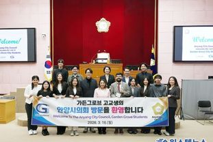 원스텝뉴스 이병희 기자 | 안양시의회는 3월 16일, 안양시의 친선결연 도시인 미국 가든그로브시 고교생 민박연수단(어렐리 플로레스 등 12명)이 안양시의회를 방문했다고 밝혔다. 가든그로브시는 1989년 6월 안양시와 친선결연을 맺은 이후 다양한 분야에서 교류를 이어오고 있다. 양 도시는 특히 민박연수단 프로그램을 통해 학생들이 한국과 미국을 오가며 서로의 문화를 체험할 수 있는 기회를 제공하고 있다. 이번 민박연수단은 3월 13일부터 21일까지 8박 9일의 일정으로 안양시를 방문했으며, 일정 중 안양시의회를 찾아 본회의장 등 시의회 주요시설을 견학했다. 또한 지방의회의 기능과 역할을 소개하는 홍보영상을 시청하며 시의회에 대한 이해를 높이는 시간을 가졌다. 박준모 의장은 “안양시와 가든그로브시는 1989년부터 민박연수와 축제 등 다양한 교류를 통해 긴밀한 유대를 이어오고 있다”며 “이번 민박 교류가 서로의 문화와 정서를 이해하고 우정을 다지는 계기가 되길 바란다”고 말했다. 이어 “비록 짧은 일정이지만 한국의 다양한 문화를 체험하며 뜻깊은 시간을 보내길 기대한다”고 덧붙였다.
