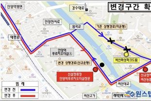 원스텝뉴스 이병희 기자 | 안양시는 마을버스 5-1번의 운행 경로를 오는 21일 첫차부터 일부 변경한다고 18일 밝혔다. 핵심 변경 구간은 안양1동 행정복지센터에서 비산사거리로 이어지는 안양천서로 경로다. 기존에는 좁은 도로 여건과 교통 신호 체계 문제로 인해 상행과 하행 경로가 다르게 운영돼 왔다. 이로 인해 한 방향으로만 버스 이용이 가능했던 시민들이 불편을 겪어왔다. 하지만 최근 안양역푸르지오더샵 아파트(구 진흥아파트) 재건축 사업과 병행하여 도로 확장과 신호 체계 개선이 완료됨에 따라, 시는 이 구간의 노선을 양방향 동일하게 일원화했다. 노선 변경에 맞춰 정차 정류장도 조정된다. 마을버스 5-1번 버스는 앞으로 '안양역푸르지오더샵정문'과 '비산농협' 등 2곳에 신규 정차한다. 반면, 안양역에서 범계역 방면 운행 시 정차하던 기존 '비산화성파크드림' 정류장은 노선 효율화를 위해 더 이상 경유하지 않는다. 기존 이용객은 인접한 '비산농협'이나 '비산사거리.이마트' 정류장을 이용할 수 있다. 운행사인 평촌교통(대표 김종호)은 노선 변경 후에도 기존 배차 간격을 유지하고 차
