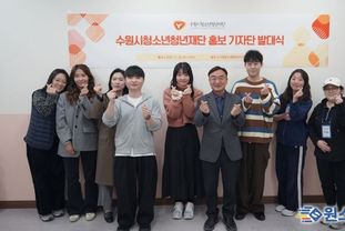 원스텝뉴스 이병희 기자 | 수원시청소년청년재단은 11월 29일 수원청소년문화센터에서 '홍보 기자단 1기' 발대식을 열고, 청년 중심의 홍보 활동을 본격화했다. 올해 10월 28일부터 11월 8일까지 모집된 19세부터 34세까지의 청년 10명이 정식 위촉장을 받으며 공식 활동을 시작했다. 이번 발대식은 재단의 청소년·청년 정책과 사업을 청년들의 생생한 시선으로 전달하기 위해 마련됐다. 선발된 기자단은 2025년 11월부터 2026년 12월까지 약 1년간 취재·촬영·콘텐츠 제작 등 다양한 홍보활동을 수행한다. 최종진 이사장은 이날 기자단원들에게 직접 위촉장을 수여하며 "홍보 기자단은 수원의 청소년·청년 정책을 지역사회와 함께 만들어가는 참여 플랫폼이 될 것"이라며 "청년들의 참신한 아이디어와 열정으로 수원 청소년·청년의 이야기를 널리 전해주길 기대한다"고 밝혔다. 발대식에서는 선발된 기자단원들이 간단한 자기소개를 진행하고 서로의 역량과 아이디어를 공유하는 시간을 가졌다. 참가자들은 재단의 청소년·청년 정책 사업과 지역 프로그램에 대해 직접 이해하고, 앞으로 함께할 팀원들과의 관계를 다지는 기회를 얻었다. &n