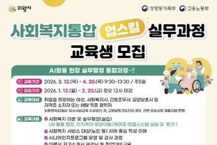 원스텝뉴스 이병희 기자 | 의왕시 여성새로일하기센터가 사회복지 분야 취업을 희망하는 여성을 위한 『사회복지 통합 업스킬 실무과정』교육생을 2월 20일까지 모집한다. 교육 과정은 ▲사회복지 이론 및 행정 실무 ▲사회복지 서비스 사례 중심 이해 ▲시니어 인지 프로그램 운영 및 강사 양성 ▲직무 소양 교육 ▲취업 준비 교육(이력서·자기소개서 클리닉, 면접 특강) 등으로 구성돼 있다. 교육은 3월 12일부터 4월 30일까지 주 5일간 진행되며, 교육생에게는 교육비 전액 무료를 비롯해 직업훈련 참여 수당과 교통비가 지원된다. 의왕시 여성새로일하기센터 사회복지 과정은 노인복지관, 재가방문요양센터, 주간보호센터, 요양원 등 다양한 사회복지기관으로의 조기 취업이 가능해 매년 시민들의 높은 호응을 얻고 있으며, 수료생들은 지난 3년간 85% 이상의 취업률을 기록하고 있다. 교육 참여를 희망하는 시민은 2월 20일 낮 12시까지 의왕고용복지플러스센터 1층(의왕시 판교로 89, 의왕여성새일센터)을 방문해 신청서를 제출하면 되고, 2월 24일 개최되는 면접을 통해 수강생이 최종 확정된다. 시 관계자는 “이번