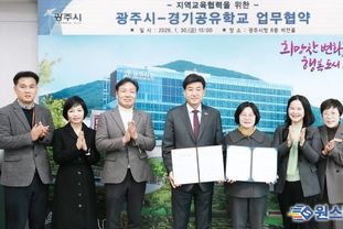 원스텝뉴스 이병희 기자 | 광주시는 30일 시청 비전홀에서 광주하남교육지원청과 지역교육 협력 강화를 위한 ‘광주시–경기공유학교 학교 맞춤형 업무협약’을 체결했다. 이날 협약식에는 방세환 시장과 오성애 교육장을 비롯해 양 기관 관계자들이 참석했다. 이번 협약은 기존 ‘광주미래교육협력지구’ 사업이 올해 2월 종료됨에 따라 사업 명칭을 ‘경기공유학교 학교 맞춤형’으로 변경하고 광주시와 경기도교육청이 앞으로 2년간 지역 내 학교와 학생을 대상으로 맞춤형 교육지원사업과 경기공유학교 정책을 연계·추진하기 위해 마련됐다. ‘경기공유학교 학교 맞춤형’ 사업은 공공이 책임지고 지역이 함께 참여해 학교 교육을 지역으로 확장하는 공공·협력·개방·확장형 미래교육 민관 협치 참여를 의미한다. 이를 통해 지역 여건과 학교 수요를 반영한 교육 협력 체계를 구축한다는 계획이다. 현재 시는 광주하남교육지원청과 협력해 초·중·고등학생을 대상으로 학교-지역 이음 오케스트라, 온마을 체험학교(탐방·체험터·마을강사), 진로 교육 지원, 미래학교 조성 지원 등 다양한 미래교육협력지구 사업을 추진하고 있다. 양 기관은 협약 체결 이후 교육