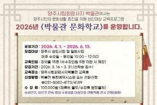 원스텝뉴스 천규영 기자 | 양주시립회암사지박물관은 오는 3월 31일까지 시민들의 문화 향유 기회를 확대하고 문화예술 활동 참여를 활성화하기 위해 상반기 ‘2026 박물관 문화학교’ 수강생을 모집한다. ‘박물관 문화학교’는 강연과 실습을 병행하는 문화예술 교육프로그램으로, 시민들이 전통 공예와 예술 활동을 직접 체험하며 문화적 소양을 넓히고 창작 활동의 즐거움을 경험할 수 있도록 마련된 프로그램이다. 이번 상반기 과정은 4월 1일부터 6월 13일까지 10주간 진행되며, ▲수요일 닥종이 인형 공예 ▲목요일 도자기 공예 ▲금요일 민화 그리기 ▲토요일 규방공예 등 총 4개 강좌로 운영된다. 모집은 오는 3월 31일까지 선착순으로 접수하며, 모집 대상은 양주시 일반 성인 또는 타 지역 성인도 신청할 수 있다. 수강료는 10만 원이며 재료비는 별도 부담이다. 수강 신청은 박물관 누리집을 통한 통합예약시스템을 이용하거나 전화상담을 통해 신청할 수 있다. 박물관 관계자는 “박물관 문화학교를 통해 시민들이 일상 속에서 문화와 예술을 가까이 접하고 창작 활동을 통해 문화적 만족도를 높일 수 있기를 기대한