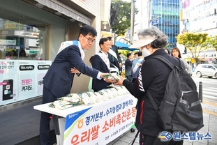 원스텝뉴스 이병희 기자 | 농협중앙회 경기본부(본부장 엄범식)와 수지농협(조합장 안철훈)은 10월 15일 용인시 수지구청역 일대에서‘농심천심(農心天心) 운동’과 연계한 쌀 소비촉진 캠페인을 펼쳤다. 이번 캠페인은 쌀 소비 감소로 어려움을 겪고 있는 농업 현장의 목소리에 귀 기울이고, 지역민이 함께 참여하는 우리 쌀 사랑 실천 운동의 일환으로 마련됐다. 이날 행사에는 농협중앙회 경기본부, 수지농협 임직원 등 40여명이 참석한 가운데 아침 출근하는 시민들에게 백옥쌀(햅쌀)을 나누어 주며 지역 쌀의 우수성을 알리고, 쌀 소비 촉진의 중요성을 강조했다. 이날 행사에서 안철훈 조합장은“이번 캠페인을 통해 쌀 소비 감소에 따른 농업인의 어려움이 조금이나마 해소되기를 바라며, 앞으로도 쌀 소비 촉진에 적극 앞장설 수 있도록 최선을 다하겠다.”고 전했다. 또한, 농협중앙회 엄범식 경기본부장은“농심천심 운동은 농업·농촌의 가치와 농업인의 노고를 국민과 함께 공유하고, 국민 모두가 농업을 지키는 데 동참하자는 취지로 시작된 전국적 캠페인”이라며,“앞으로도 지속적으로 지역농협과 협력해 우리 쌀의 소비 기반을 확대하고, 농업인의 실익 증진에 힘쓰겠다”고 밝혔다.