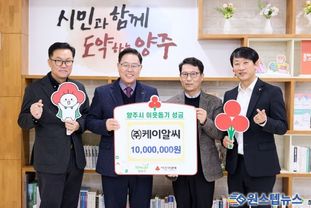 원스텝뉴스 이병희 기자 | 양주시가 10일 ㈜케이알씨(대표 오전식)로부터 이웃돕기 성금 1,000만 원을 기탁받았다. 이번 기탁식에는 오전식 대표가 참석해 시 관계자와 환담을 나누며 따뜻한 나눔의 뜻을 전했다. 기탁된 성금은 경기사회복지공동모금회를 통해 양주시 취약계층 지원에 사용될 예정이다. 오전식 대표는 “기업이 지역에서 성장한 만큼, 도움이 필요한 이웃들에게 조금이라도 힘이 되고 싶어 매년 나눔을 이어오고 있다”며 “앞으로도 지역사회와 함께하는 기업으로서 책임을 다하겠다”고 말했다. 시 관계자는 “꾸준한 기부로 이웃사랑을 실천해 주신 ㈜케이알씨에 감사드린다”며 “전달된 성금이 꼭 필요한 분들께 잘 닿을 수 있도록 시에서도 정성을 다하겠다”고 말했다. 한편 ㈜케이알씨는 매년 기부와 봉사활동을 지속해 오고 있으며, 지난 5일 양주시 ‘시민포상의 날’에서 나눔문화 확산 유공을 인정받아 포상을 받는 등 지역사회 상생에 앞장서고 있다.