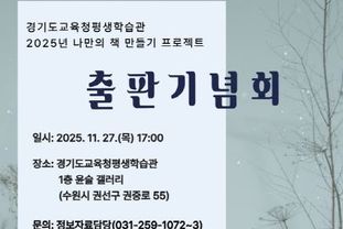 원스텝뉴스 이병희 기자 | 경기도교육청평생학습관이 ‘2025년 나만의 책 만들기 프로젝트’ 출판기념회를 개최한다. 27일 경기도교육청평생학습관 1층 윤슬갤러리에서 열리는 출판기념회는 지난 4월부터 11월까지 ‘나만의 책 만들기 프로젝트’를 통해 진행된 글쓰기 교육, 원고 집필, 온라인 첨삭, 책 출판의 전 과정을 마무리하는 행사다. 출판기념회에서는 학생·성인 등 29명의 시민작가가 직접 집필·출판한 3권의 책을 공개하고 작가와 지역주민이 함께 창작의 성취를 나누는 자리로 마련된다. 출판기념회는 ▲출판 도서 3종 소개 ▲참여 작가 29인 소개 ▲참여 작가의 출판 소감 발표 ▲출판 도서 전달 ▲기념 촬영 및 전시장 관람으로 진행된다. 또한 전시장에는 출판 도서(3종)와 작가 추천 도서가 함께 전시된다. 경기도교육청평생학습관은 경기교육의 예술·체험교육 확대 정책에 따라 지역사회와 함께하는 창작·출판 생태계 조성을 위해 노력하고 있다. 류영신 경기도교육청평생학습관장은 “한 사람의 이야기가 한 권의 책이 되어 지역사회와 공유되는 과정은 학습자의 자아실현과 독서문화 확산에 큰 의미가 있다”며 “앞