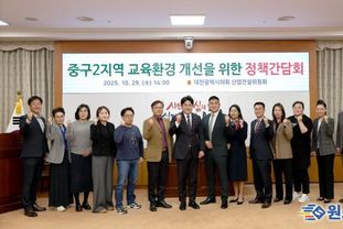 원스텝뉴스 이병희 기자 | 대전시의회는 산업건설위원회 김선광 의원(국민의힘, 중구2) 주재로 29일 대전시의회 소통실에서 ‘중구2지역 교육환경 개선을 위한 정책간담회’를 개최해 지역 현안에 대한 실질적인 해법 모색에 나섰다. 이날 간담회는 김선광 시의원이 좌장을 맡아 진행했으며, 지역 학교의 시설 노후화와 통학로 안전문제 등 교육현장의 다양한 현안을 공유하고, 실질적인 개선방안을 모색하기 위해 마련됐다. 간담회 토론자로 대전시교육청의 기획예산과장, 시설과장, 대전동부교육지원청 시설지원과장 그리고 대전목동초·목양초·버드내초·오류초·유평초·중앙초·태평초·대성중·중앙중·충남여중·중앙고·대성고·충남여고 등 중구2지역 각 학교의 운영위원장들이 참석해 학교별 현안을 공유했다. 참석자들은 △노후 냉·난방시설 교체, △안전한 통학로 정비, △체육관 및 급식시설 확충, △운동장 및 수목 정비, △학생 이동 동선 개선 등 다양한 개선 요청사항을 제시하며 학교별 상황을 생생하게 전달했다. 김선광 의원은 “학교는 아이들이 하루 대부분을 보내는 생활공간이자 미래를 준비하는 첫 번째 사회”라며, “안전하고 쾌적한 교육환경