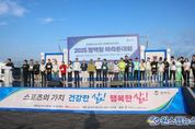 원스텝뉴스 이병희 기자 | 평택시의회는 19일, 평택항 엠에스로지스틱 일원(평택시 포승읍 신영리)에서 개최된‘2025 평택항 마라톤대회’에 참석해 전국에서 모인 마라토너들의 열정을 응원했다. 이날 행사에는 강정구 평택시의회의장을 비롯한 시의원이 참석하고 평택시 체육회장, 평택시육상연맹 관계자 등 내외빈과 참가자 약 7,300여명이 함께했다. 이번 평택항 마라톤대회는 스트레칭으로 몸을 푼 뒤 하프코스(21.0975km)·10km,·5km 3개 부문으로 나눠 출발했다. 하프코스는 평택당진항 자유무역지역을 지나 평택항 서부두 내항방면을 거쳐 퓨리나 평택공장까지, 10km구간은 서부두 해안도로까지, 5km구간은 평택항 서부두 내항방면까지 각각 반환점으로 삼는 코스다. 강정구 의장은 “마라토너가 달리는 이유는 끝이 아닌 여정 그 자체에 있기에 중요한 것은 완주가 아니라 그 과정 속에서 자신을 발견하는 일”이라며, “평택시의회도 건강한 공동체 속에서 도전의 기쁨을 누릴 수 있도록 생활체육 기반을 튼튼히 다지는 데 최선을 다하겠다”라고 전했다. 한편 올해로 25회를 맞는‘2025 평택항 마라톤대회’