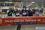 원스텝뉴스 이병희 기자 | 의정부시는 여성폭력 추방주간(11월 25일~12월 1일)을 맞아 11월 27일 의정부역사 3층에서 ‘여성 폭력 근절 캠페인’을 실시했다. 이번 캠페인에는 여성긴급전화1366 경기북부센터, 성폭력피해자 보호시설 의정부시 사랑의 쉼터, (사)사랑깊은뜰 경기북부가정문제상담소, 의정부장애인성폭력상담소, 성매매피해상담소 두레방, 여성친화도시 시민서포터즈(여의주) 등 유관기관 및 단체의 20여 명이 참여했고 많은 시민이 캠페인의 필요성을 공감했다. 여성폭력 추방주간은 폭력없는 사회를 위해 여성폭력 방지의 의미를 되새기는 기간으로 매년 11월 25일부터 12월 1일까지 운영하고 있다. 특히, 11월 25일은 UN이 정한 ‘세계 여성폭력 추방의 날’이기도 하다. 이날 캠페인에서는 ‘폭력 없는 안전한 일상, 존중이 빛나는 사회’를 주제로, 여성폭력 근절을 위한 서명운동 및 여성폭력 피해자 지원기관 안내를 비롯한 다양한 활동을 실시하며 여성폭력 방지의 의미를 되새기는 시간을 가졌다. 김동근 시장은 “향후에도 폭력 예방과 근절, 피해자 보호 및 지원에 대한 지속적인 홍보를 통해 안전한 사회분