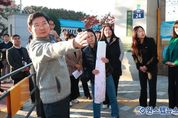 원스텝뉴스 이병희 기자 | 이상일 용인특례시장이 14일 오후 처인구 포곡읍에 있는 포곡초등학교를 방문해 학교 관계자와 학부모들을 만나 학생들의 안전한 통학환경 조성과 교육 발전 방안을 논의했다. 이 시장은 9월 30일 열린 처인구 초등학교 학부모 간담회에 참석한 포곡초등학교 학부모 회장의 학교 방문 요청을 받아들여 이날 학교를 찾았다. 이 시장을 만난 포곡초 학부모들은 ‘초곡초 학생들을 사랑하는 이상일 용인시장의 방문을 환영한다’라는 문구가 적힌 플래카드로 환영 의사를 표했다. 이상일 시장은 포곡초등학교 학부모 회장이 요청한 후문 통학로 개선, 소방도로 공사 마무리 상황 등에 대한 현장 보고를 받았다. 시는 학교 후문 통학로와 관련해 상가와 교회를 출입하는 차량의 통행에 방해되지 않는 구간에 시선유도봉을 설치했고, 소방도로 공사를 마무리하고 표지판도 이동 요청했다. 이 시장은 현장에 나온 학교 관계자·학부모들과 운동장과 주차장 부근에 학생들을 위한 승하차 공간을 만들 수 있는지에 대한 의견도 나눴다. 이 시장은 학교 운동장 옆의 ‘도시계획도로 소로2-10’가 학교 주차장 쪽
