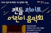 원스텝뉴스 천규영 기자 | 김포시 도서관은 2026 김포 독서대전의 시작을 알리는 공연으로 '캔들 라이트 어린이 음악회'를 2026년 3월 12일 19시 10분부터 20시 10분까지 모담도서관 1층 다목적강당에서 진행한다. 봄빛이 스며들듯 1200~1300개의 LED캔들을 켜고 앙상블 여운팀이 디즈디 메들리와 지브리 메들리, 어린이들이 따라 부를 수 있는 인기 동요를 연주한다. 또한 공연이 끝나면 '모아봐요 스탬프북'을 배포하여 올해 김포시 도서관에서 진행하는 독서문화진흥 프로그램을 참여 후 스탬프를 모아 2026 김포 독서대전 행사에서 활용할 수 있도록 안내한다. 도서관 관계자는 “이번 공연은 2026 김포 독서대전을 알리고, 어린이와 가족들이 도서관에서 다양한 독서 활동과 행사를 참여 할 수 있도록 응원하는 자리로, 김포시 도서관은 올해 독서대전 슬로건 '책, 일생의 기쁨'에 맞게 전 연령층이 함께할 수 있는 독서문화진흥 프로그램을 기획할 예정”이라고 말했다. 참여 신청은 2026년 2월 24일 10시부터 김포시 통합예약 누리집 (모집/행사)에서 진행한다.