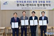 원스텝뉴스 이병희 기자 | 경기도는 24일 경기도청 북부청사에서 경기남부도로(주), 제삼경인고속도로(주), 일산대교(주) 등 도내 민자도로 사업자 3개사와 ESG(환경·사회·투명) 경영 강화를 위한 업무협약을 체결했다. 지속가능한 도로 환경 조성과 지역사회 공헌활동 활성화를 위해 마련된 이번 협약체결에는 김대순 경기도 행정2부지사와 민자도로 사업자 대표이사가 참석했다. 협약의 주요내용으로는 환경 측면에서 온실가스 배출을 최소화하도록 친환경 시설물․장비 도입에 힘쓰고, 사회적 책임으로는 지역사회 공헌활동과 도로 이용객의 안전․보건 강화를 포함한다. 지배구조 부문으로는 법과 윤리를 준수하고 투명한 기업 운영 체계를 마련하는 데 적극 협력하는 내용을 포함한다. 경기도는 민자사업자의 원활한 ESG 경영을 위해 필요시 적극적으로 행정지원할 예정이며, 협약기관 간 실무협의회를 구성하여 ESG 경영 강화에 대하여 지속적으로 논의할 계획이다. 이번 협약으로 민자도로 수익의 지역사회 환원을 통해 민자도로에 대한 ‘비싼 요금’ 또는 ‘과도한 수익 추구’라는 기존 인식을 전환하고, RE100과 같은 글로벌 환경 목표에