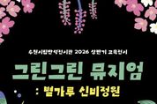 원스텝뉴스 천규영 기자 | 경기도 수원시립미술관은 자연과의 관계를 성찰하고 생태적 가치를 체험하는 참여형 교육전시 《그린그린 뮤지엄 : 별가루 신비정원》을 3월 24일부터 7월 24일까지 수원시립만석전시관에서 개최한다. 《그린그린 뮤지엄》은‘자연과의 눈맞춤’을 주제로 자연의 초록(Green) 빛을 예술로 그려낸다(Drawing)는 중의적 의미를 담아 연간으로 운영된다. 2026년 상ㆍ하반기 두 차례에 걸쳐 운영되며, 상반기 1부 전시는《그린그린 뮤지엄: 별가루 신비정원》에 이어 하반기에는 새로운 주제의 2부 전시가 이어질 예정이다. 이번 전시는 회화 작가 진영(b.1982)과 설치, 사운드 등 융복합 작업을 선보이는 팀 아르테코(est.2023, 설혜린, 이소희, 김창수, 드림스케이프)가 참여한다. 전시는 총 20점의 작품으로 구성되며, 두 개의 섹션을 통해 자연을 감각하고 사유하는 경험을 제공한다. 첫 번째 섹션 '어두운 밤, 숲의 이야기'는 앵무새를 매개로 숲의 서사를 그려내는 작가 진영의 작품을 소개한다. 클로드 모네의 '수련이 있는 연'을 오마주한 작업 '사이 02'(2024)는 도시 속 유일한 쉼의 공