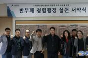 원스텝뉴스 이병희 기자 | 수원문화재단은 ‘청렴행정 실천 서약식’을 개최하고, 조직 전반에 청렴 가치를 확산하기 위한 실천 의지를 다졌다. 이날 행사에서는 곽도용 대표이사를 비롯한 10여 명의 부서장들이 참석해 청렴행정 실천 서약서를 낭독하고, 청렴행정의 중요성을 공유하며 공직자로서 갖추어야 할 기본 가치에 대해 공유했다. 청렴 실천 의지를 다짐하기 위해, 서약서에는 ▲법과 원칙 준수 ▲부당 청탁 및 금품 수수 금지 ▲사적 이해관계 배제 및 이해충돌 방지 ▲갑질 근절 ▲인권존중 조직문화 조성 등의 내용을 담았다. 청렴행정 실천 서약식 이후, 수원문화재단 전 직원 역시 청렴행정 실천 서약서 서명에 동참했다. 이를 통해 업무를 수행하는 과정 전반에 걸쳐 청렴한 태도와 인권을 존중하는 문화 조성 등 건강한 조직문화 정착을 위한 동참을 다짐했다. 수원문화재단 곽도용 대표이사는 “청렴은 선택이 아닌 필수이며, 특히 고위직이 먼저 실천할 때 조직의 신뢰도를 높일 수 있다”며, “수원문화재단 전 직원의 다짐으로 건강한 조직문화와 지속가능한 경영을 지속해나가겠다”고 말했다. 수원문화재단은 향후 참여형