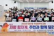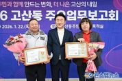 원스텝뉴스 이병희 기자 | 의정부시 고산동주민센터는 1월 22일 주민센터 2층 다목적실에서 ‘2026년 주요업무보고회’를 개최했다. 이번 보고회는 ‘주민과 함께 만드는 변화, 더 나은 고산의 내일’을 주제로 지역 주민과 내빈 등 100여 명이 참석한 가운데 2025년 추진 경과 및 2026년 중점 추진 사업을 주민과 함께 공유하기 위해 마련됐다. 행사는 주민자치센터 수강생의 식전공연을 시작으로 ▲새해 인사 및 덕담 ▲지역발전 유공자 표창장 수여 ▲주요 업무 보고 ▲주민과의 대화 순으로 진행됐다. 고산동장은 주요업무 보고를 통해 ▲고산동 신설 ▲물류센터 부지 공공주택 공급 전환 ▲대형유통시설 입접 관련 협약 ▲아이돌봄시설 클러스터 시범사업 ▲학생 통학버스, 똑버스 등 대중교통 개선 및 나눔주차장 조성을 통한 교통환경 개선 등 생활밀착형 사업의 추진 경과를 공유했다. 또, ▲디자인도서관 조성 ▲민락TG 우회도로 개설 ▲법조타운 조성 ▲고산지구 제3공영주차장 조성 ▲주민커뮤니티 공간 조성 ▲민관협력, 모두가 돌보는 온(on)마을 공동체 사업 등 2026년 진행 예정인 핵심 사업을 설명하며 주민과 함께 고