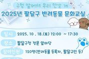 원스텝뉴스 이병희 기자 | 수원시 팔달구는 10월 18일 오후 12시부터 17시 30분까지 팔달구청 정문 앞마당에서 ‘2025년 팔달구 반려동물 문화교실’을 개최한다고 밝혔다. 반려동물 문화교실은 성숙한 반려문화 확산과 올바른 반려동물 관리, 양육 방법을 알리기 위해 마련됐으며 반려동물 등록자 및 팔달구민 120명을 대상으로 추진한다. 교육 프로그램은 △인식표 만들기 △산책 그룹 훈련 △반려견 셀프 미용으로 총 3개 프로그램을 추진한다. 12시부터 진행하는 ‘인식표 만들기’는 반려견 유실 방지를 위해 동물등록번호와 견주 연락처를 새긴 맞춤형 인식표를 직접 제작할 수 있고, 14시부터는 ‘산책 그룹 훈련’에서는 산책줄 핸들링과 돌발 상황 시 대처법 등 및 올바른 산책 방법에 대해 배워볼 수 있다. 15시 30분에는 초보자도 쉽게 실천할 수 있는 ‘반려견 셀프 미용 수업’이 준비되어 있다. 팔달구 관계자는 “2025년 반려동물 문화교실 개최를 통해 구민들이 반려동물을 책임감 있게 관리하고, 올바른 반려 문화가 조성되길 바란다“라고 말했다. 한편, 팔달구는 구 홈페이지, 안내문자 및 QR코드