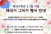 원스텝뉴스 이병희 기자 | 영통구 영통2동은 영통2동 새마을문고가 제107주년 3·1절을 맞아 지역 주민과 함께 독립운동의 뜻을 기리고 나라사랑의 의미를 되새기기 위한 ‘태극기 그리기’ 행사를 운영한다고 밝혔다. 이번 행사는 오는 3월 18일까지 매일 오전 10시부터 오후 5시까지 영통2동 새마을문고에서 진행되며, 전 연령대 누구나 현장 접수를 통해 참여할 수 있다. 참가자들은 직접 태극기와 무궁화를 그리며 3·1운동 정신을 생활 속에서 체험하는 시간을 갖는다. 제출 시 룰렛 돌리기를 통해 소정의 상품도 증정할 예정이다. 영통2동 새마을문고는 앞으로도 독서문화 활동과 연계한 다양한 생활문화 프로그램을 통해 주민 참여의 장을 넓히고, 지역의 역사·문화 가치를 함께 나누는 활동을 이어갈 계획이다.