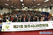 원스텝뉴스 천규영 기자 | 파주시는 지난 24일 파주시노인복지관에서 ‘제21회 파주시니어한마당’행사를 성황리에 개최했다고 밝혔다. 이번 행사는 노인의 날을 기념해 지역사회 유공자 표창식과 더불어, 10월 한 달 동안 다양한 프로그램이 진행되는 풍성한 축제로 꾸며졌다. 본 행사에는 250여 명의 어르신과 지역 주민이 참여해 복지관을 가득 메웠으며, 기념식에서는 노인복지 증진에 기여한 이들에게 감사의 마음을 담은 표창이 수여됐다. 이어 열린 ‘꿈빛문화예술제’에서는 원예, 공예, 차(茶) 테라피 등 다채로운 체험 공간이 운영됐으며, ㈜아워홈이 후원한 먹거리 트럭을 통해 따뜻한 음식이 제공됐다. 지난 21일에는 가수 김경민, 노현태가 출연한 ‘건강박수 공연’이 진행돼 어르신들에게 즐거움을 선사했다. 오는 31일에는 파주여자고등학교 학생들이 참여하는 ‘고운 손의 날 뷰티데이’프로그램이 예정되어 있어, 학생과 자원봉사자들이 어르신들에게 손톱 관리와 손 안마 서비스를 제공해 세대 간 교류의 장을 이어갈 예정이다. 육언태 파주시노인복지관장은 “이번 ‘파주시니어한마당’은 어르신들이 직접 참여하고 즐기는