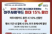 원스텝뉴스 이병희 기자 | 여주시는 ‘2025 코리아 그랜드 페스티벌’ 기간인 오는 10월 29일부터 11월 9일까지 ‘여주사랑카드 최대 15% 할인’ 행사를 한다고 밝혔다. 여주사랑카드 사용자는 충전 시 10% 선할인(인센티브 충전)을 받을 수 있으며, 행사기간 내 결제 시 추가로 5% 후캐시백 지원을 받을 수 있다. 5% 캐시백 행사는 예산 소진시까지 1인 최대15,000원까지 혜택을 받을 수 있도록 지원하며, 지원 내역은 모바일 경기지역화폐 앱에서 실시간으로 확인할 수 있다고 안내했다. (5% 캐시백 행사에 민생회복 소비쿠폰, 농어민기회소득 등 정책수당은 결제 금액에 포함되지 않는다.) 코리아 그랜드 페스티벌은 내수 활성화를 위해 중소벤처기업부, 산업통상자원부 등 정부가 주관하는 소비 축제로 10개 부처와 3만개 유통사가 참여하며, 지역사랑상품권과 디지털온누리상품권 추가 할인, 상생소비복권, 카드사 캐시백 이벤트 등을 진행한다. 여주시 일자리경제과 관계자는 “이번 행사를 통해 지역 내 소비 진작, 지역 소상공인들의 매출 증대에 도움이 되기를 바란다”라며, “시민분들의 많은 관심과 참여를 바란다”고 말했다.