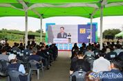 원스텝뉴스 이병희 기자 | 전남 무안군은 24일 전남서남부채소농협에 첨단 AI 자동화 설비기술의 현장 실증을 위해 구축한 ‘농산물 산지유통 실증센터’ 개소식을 성황리에 개최했다. 이날 개소식에는 김산 군수와 이태문 농림축산식품부 정책보좌관을 비롯해 한국로봇융합연구원, 한국생산기술연구원 등 연구기관 관계자와 전국 각지에서 모인 농협 조합장 등 200여 명이 참석해 센터 개소를 축하하며, 향후 운영 방향에 대한 기대감을 나눴다. 개소식은 △개식 선언 △주요 내외빈 소개 △기념사 및 축사 △홍보영상 및 경과보고 △기념 버튼식 △현장 시연 순서로 진행됐다. 2022년 농식품부 공모사업인 ‘고부가가치식품기술개발사업(국비 207억 원)’ 수행을 위해 구축된 실증센터는 국내 스마트 표준모델로 구축된 신규 APC사업과 연계해 지상 2층의 실증센터 1개 동(1,747㎡)과 저장시설 2개 동(1,658㎡) 규모로 현경면 평산리에 조성됐다. 농산물 산지유통 실증센터는 ▲ AI 기반 농산물 자동 선별․파렛타이징(포장) 시스템 적용 ▲ 자동화 물류 구축 R&D 실증화 지원 ▲ 무인지게차․청소로봇 설비 활용 및 각종 소프트