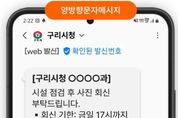 원스텝뉴스 이병희 기자 | 구리시는 시민들의 긍정적인 호응에 따라 ‘양방향 문자 시스템’ 서비스를 오는 11월 10일부터 확대 운영한다고 밝혔다. ‘양방향 문자 시스템’은 기존의 단방향 안내 문자 발송 방식을 개선해, 시민이 문자 메시지를 통해 직접 회신하거나 문의할 수 있도록 구축한 시스템으로, 올해 하반기부터 시범 운영해 왔다. 서비스가 확대되면 시민들은 ▲시정 안내 ▲민원 처리 결과 확인 ▲설문 참여 ▲회의·행사 참석 여부 회신 ▲지원사업 신청 ▲서류 제출 ▲민원 신고·답변 등 다양한 행정 서비스를 문자 메시지로 간편하게 이용할 수 있어, 시와 더욱 신속하고 편리하게 실시간 소통할 수 있게 된다. 또한 최근 증가하는 문자 결제 사기(스미싱) 피해를 예방하기 위해, 시가 발송하는 모든 공식 문자 메시지에는 구리시 공식 브랜드와 ‘안심 마크’를 표시하는 ‘안심 문자 서비스’도 함께 운영하고 있다. 시민이 문자를 수신하면 발신자 정보란에 [구리시청 안심 마크] 가 표기되며, 메시지 본문에는 “이 문자는 구리시에서 발송한 공식 문자입니다”라는 [확인된 발신 번호] 안내 문구가 기재되어 있어 시민이 안심하고 문자를