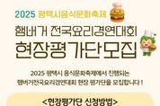 원스텝뉴스 천규영 기자 | 평택시는 오는 25일 농업생태원에서 ‘2025 평택시 음식문화축제’를 통해 ▲전국 요리경연대회 ▲평택 지역 맛집 및 세계음식 시식·체험관 ▲노 오븐 베이킹 체험관 ▲탄소중립 실천·홍보관 등 다채로운 부스가 운영돼 시민들에게 풍성한 경험을 선사할 예정이다. 전국 요리경연대회는 ‘평택의 맛, 나만의 아이디어로 버거를 완성하다’를 주제로 총 18팀(일반부 10, 가족부 8)이 본선에 진출해 열띤 경연을 펼친다. 지난해와 달리 참가 부문이 일반부와 가족부로 확대됐으며, 시상 규모도 10팀 740만 원으로 늘어나 큰 기대를 모으고 있다. 경연대회의 생생한 현장을 함께할 시민 현장평가단도 사전 모집한다. 10월 24일(금) 오전 9시부터 오후 5시까지 일반부와 가족부 각 20명씩 무작위로 선착순 접수받으며, 편식 없는 고등학생 이상이라면 누구나 신청할 수 있고, 선정된 지원자는 실제 경연 현장에서 요리를 맛보고 평가하게 된다. 또한, 오전 10시에는 빵과당신 인재홍(대한민국 제과명장)이 진행하는 베이킹 체험이 마련돼 있으며, 참가 신청은 24일(금) 오전 10시부터 평택예총 공식 블로그 및 평택
