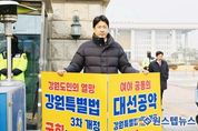 원스텝뉴스 이병희 기자 | 강원특별자치도의회 문관현 기획행정위원장은 27일 여의도 국회 앞에서 ‘강원특별법 3차 개정안’의 조속한 처리를 촉구하며 릴레이 1인 시위에 나섰다. 개정안 통과를 위해 누구보다 앞장서 온 강원특별자치도의회의 상임위원장이 도민을 대신해 국회 앞에서 직접 행동에 나섰다는 점에서 큰 의미를 갖는다. 문 위원장은 국회 정문 앞에서 피켓을 들고 “강원특별법 3차 개정안은 강원의 미래를 여는 열쇠이자 300만 도민의 절박한 요구”라며,“도민의 명령을 받드는 도의회가 더는 침묵할 수 없다. 국회는 즉각 심사에 착수해야 한다”고 강하게 외쳤다. 그는 올해 내내 강원특별법 개정을 위해 중앙부처·국회·전문가 그룹과의 논의를 직접 챙기며 ‘책상에서만 말하는 정치가 아닌, 현장에서 답을 찾는 정치’를 강조해 왔다. 이번 1인 시위 역시 이러한 실천적 리더십의 연장선으로, 지역의 핵심 현안을 단순히 주장하는 데 그치지 않고 ‘몸으로 밀어붙이는 추진력’을 보여준 셈이다. 특히 “강원특별자치도가 실질적인 권한을 갖고 미래 전략을 스스로 주도하기 위해서는 3차 개정이 필수”라며, “정치적