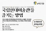 원스텝뉴스 이병희 기자 | 파주시 교하도서관은 오는 20일과 27일, 15시부터 17시까지 교하도서관 3층 소극장에서 전문 안내원(도슨트) 초청 강연 프로그램 ‘국립현대미술관을 즐기는 방법’을 운영한다. 이번 프로그램은 국립현대미술관 윤유미 전문 안내원(도슨트)을 초청해, 국립현대미술관 서울관·덕수궁관·과천관의 상설전시를 중심으로 한국 현대·근현대 미술의 흐름을 이해하고 미술관을 보다 깊이 있게 감상할 수 있는 방법을 안내하기 위해 마련됐다. 1차시 강연은 1월 20일에 진행되며, 국립현대미술관 서울관과 덕수궁관의 주요 전시를 중심으로 ‘한국현대미술의 하이라이트’전시를 다룬다. 2차시 강연은 1월 27일에 열리며, 과천관 상설전시인 ‘한국근현대미술 I·II’와 ‘야외조각공원’을 소개할 예정이다. 강연은 청소년부터 성인까지 총 30명을 대상으로 계획됐으나, 신청자가 많아 더 많은 시민이 참여할 수 있도록 장소를 3층 소극장으로 변경해 운영한다. 이재면 교하도서관장은 “이번 강연을 통해 시민들이 현대미술을 보다 친근하게 접하고, 미술관 관람의 즐거움이 한층 넓어지는 계기가 되길 바란다”라고 밝혔다.