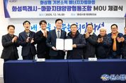 원스텝뉴스 이병희 기자 | 화성특례시는 16일 시청 중앙회의실에서 마파지태양광협동조합과 ‘화성형 기본소득 에너지자립마을 조성을 위한 업무협약(MOU)’을 체결했다. 이날 협약식에는 정명근 화성특례시장을 비롯해 김진원 마파지태양광 협동조합장 등이 참석해, 주민주도형 재생에너지 기반 에너지자립마을 조성사업의 추진에 상호 협력하기로 했다. 이번 사업은 국유지를 활용해 주민이 사업비 전액을 부담해 100% 주민주도형 ‘에너지자립마을’을 조성하는 경기도 최초 사례로, 재생에너지 수익을 마을 복지와 기본소득으로 연계하는 ‘화성형 기본사회’ 정책의 첫 시범 모델이다. 마파지태양광협동조합은 석포6리 주민 25가구가 공동 운영하는 협동조합으로, 사업주체로서 장안면 석포리 823번지 제방 국유지에 415kW 규모의 태양광 발전설비를 설치한다. 사업비는 총 5억 2천만 원으로 전액을 주민이 자부담한다. 시는 협약에 따라 인허가, 관계기관 협의, 제도 검토 등 사업 추진에 필요한 행정적·제도적 지원을 담당하고, 에너지자립마을이 안정적으로 운영될 수 있도록 정책적 기반 마련에 협력한다. 또한 재생에너지 수익이