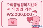 원스텝뉴스 이병희 기자 | 오학동은 지난 11월 27일 익명 기부자가 후원한 200만원을 지역 사회의 취약계층을 지원하는 데 사용할 예정이라고 밝혔다. 기부자에 대한 정보는 공개되지 않았지만, 기부자의 따뜻한 마음은 오학동 주민들에게 큰 힘이 될 것이다. 기부된 200만원은 두 가지 형태로 나누어 사용된다. 첫 번째, 100만원은 현금으로 경기사회복지공동모금회 오학동 지정계좌에 입금되어, 취약계층 가구에 직접적인 지원을 제공할 예정이다. 두 번째, 나머지 100만원 상당의 기부 물품은 ‘오학, 나눔을 잇다'을 통해 관내 취약계층 가구에 전달될 예정이다. 김병선 오학동장은 “이번 익명 기부자의 후원은 오학동 지역 사회에 실질적인 큰 도움이 될 것이다”며, “따뜻한 후원은 오학동 내 어려운 가정들이 겨울을 따뜻하게 보낼 수 있도록 중요한 역할을 할 것이다"라고 덧붙였다. 오학동은 이번 기부를 통해 지역 사회의 나눔 문화를 더욱 확산시키고, 기부자들의 따뜻한 마음을 지역 주민들에게 전할 예정이다. 특히, '오학 나눔을 잇다' 을 통해 기부 물품은 신속하게 취약계층 가구에 전달될 것이며, 겨울철을 맞아 실질적인 도움이