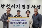 원스텝뉴스 이병희 기자 | 지난 25일, 안성시자원봉사센터는 머크일렉트로닉머티리얼즈㈜ 임직원 봉사단인 ‘머크 온누리愛클럽’과 함께 관내 학생을 위한 ‘희망장학금’ 전달식을 가졌다. 이번 장학금은 학업에 대한 열의가 높고 성실한 지역 내 학생을 격려하기 위해 마련됐으며, 머크 임직원들이 자발적으로 조성한 후원금을 바탕으로 전달되어 의미를 더했다. 머크 온누리愛클럽은 그동안 안성 지역사회를 위해 다양한 봉사활동과 기부를 이어오며 기업의 사회적 책임을 실천하고 있는 임직원 중심의 봉사단체다. 김동성 센터장은 “어려운 외부 환경에서도 꿈을 향해 정진하는 학생에게 이번 장학금이 큰 힘이 되길 바란다”라며, “매년 잊지 않고 지역 인재 양성을 위해 따뜻한 정성을 모아주시는 머크 온누리愛클럽에 깊은 감사를 드린다”라고 말했다. 머크 온누리愛클럽 정재훈 회장은 “임직원들의 작은 정성이 학생의 소중한 꿈을 지탱하는 마중물이 되길 바란다”라며, “우리 주변의 이웃을 살피고 지역사회와 함께 성장할 수 있는 나눔 활동을 지속적으로 펼치겠다”라고 화답했다. 한편, 안성시자원봉사센터는 다양한 이해관계자의 지역사