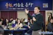 원스텝뉴스 이병희 기자 | “학교 운동장에서 놀고 싶어 하는 친구가 많은데, 축구나 야구를 하는 친구들이 주로 운동장을 사용해서 다른 친구들은 운동장에서 놀기가 쉽지 않습니다. 자투리 공간에 달팽이놀이 등을 할 수 있는 바닥 놀이터를 만들어서 더 많은 친구가 운동장을 이용할 수 있었으면 좋겠습니다.” 6일 저녁 광교2동 행정복지센터에서 열린 ‘광교2동 새빛만남’. 이의중학교 1학년 학생이 학교 운동장을 모든 학생이 사용할 수 있는 방안을 제안했다. 이날 새빛만남에는 이의중‧이의고 학생 5명이 참여했다. 이재준 수원시장은 학생들에게 가장 먼저 발언권을 주며 “수원시에 바라는 점, 제안하고 싶은 것이 있으면 무엇이든 이야기해 달라”고 말했다. 5명의 학생은 저마다 의견을 냈다. 이의중학교 전교부회장은 “후배들이 여름에 시원한 물을 마실 수 있도록, 교실마다 미니냉장고를 설치해 달라”고 제안했고, 이의고등학교 학생자치회장은 “광교에서 수원 다른 지역으로 이동하는 대중교통이 불편하다. 개선해 달라”고 요청했다. 새빛만남에 참석한 시민들은 청소년들의 발언이 끝날 때마다 박수로 격려했다. ‘2025 새빛만남’