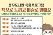 원스텝뉴스 천규영 기자 | 김포시 풍무도서관은 가정의 달을 맞아 만 4~5세 어린이를 둔 김포가족을 대상으로 ‘책으로 느끼고 미술로 말해요’를 오는 5월 12일부터 5월 26일까지 매주 화요일 오후 4시부터 6시까지 총 3회에 걸쳐 운영한다. 프로그램은 그림책예술심리 전문기관인 하루마음 김은지 대표가 진행한다. 참여자들은 차수별 주제도서를 함께 읽은 후 다양한 미술활동을 통해 가족 간 정서적 교감을 나누는 시간을 가질 예정이다. 해당 프로그램의 취지에 따라 1회차는 어린이 단독 참여로 운영되며, 2회차부터는 보호자 동반 참여가 필수다. 4월 21일 오전 10시부터 풍무도서관 홈페이지를 통해 신청할 수 있으며, 만 4~5세 어린이를 둔 김포가족 7팀을 선착순으로 모집한다.