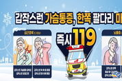 원스텝뉴스 이병희 기자 | 구리시는 본격적인 추위로 심뇌혈관질환의 발생 및 악화 위험이 커짐에 따라, 고위험군 주민들의 겨울철 건강관리에 각별한 주의가 필요하다고 당부했다. 뇌졸중과 심근경색증 등 심뇌혈관질환은 전조 증상 없이 갑작스럽게 발생할 수 있으며, 적시에 진단과 치료가 이루어지지 않으면 생명까지 위협할 수 있다. 따라서, 조기 증상과 대처 요령을 정확히 알고 있는 것이 무엇보다 중요하다. 심근경색의 주요 의심 증상은 △소화불량 △팔·어깨 통증 또는 불편감 △가슴 통증 △식은땀 △답답함 △어지러움 등이며, 일부는 이를 단순 ‘급체’로 착각하는 경우가 있어 각별한 주의가 요구된다. 뇌졸중은 △한쪽 팔·다리 마비 또는 감각 이상 △발음이 어둔해짐 △갑작스러운 어지러움 △극심한 두통 등이 대표적인 증상이다. 이 같은 증상이 나타나면 골든타임 확보가 생존과 회복에 결정적으로 작용하므로, 바로 119에 신고하는 것이 중요하다. 특히 노인, 만성질환자, 기존 심뇌혈관질환 병력이 있는 고위험군은 외출 시 보온에 신경 쓰고, 한파 시에는 외부 활동을 될 수 있으면 줄이는 것이 바람직하다. 고혈