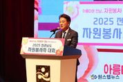 원스텝뉴스 이병희 기자 | 김태균 전남도의장은 12월 10일 전남도청 김대중강당에서 개최된 ‘2025 전라남도 자원봉사자 대회’에 참석하여 유공자 표창 수여와 함께 자원봉사자들에게 감사의 마음을 전했다. 이날 자원봉사자 대회에는 김영록 도지사와 전남도의원, 시군 자원봉사자 등 1,000여 명이 참석한 가운데 식전공연에 이어 자원봉사활동 영상 상영, 우수봉사자 유공표창 시상, 퍼포먼스, 화합 한마당 순으로 진행됐다. 김태균 의장은 축사를 통해 “자원봉사자 여러분들이 계시기에 전남의 어두운 곳이나 힘든 곳에서 웃음꽃이 활짝 피고 있다”며 “앞으로도 도움이 필요한 분들이 마음 놓고 지낼 수 있도록 좀 더 정성을 다해 주시면 고맙겠다는 말씀을 드린다”고 강조했다. 이어, “내년에도 22개 시군 곳곳에서 웃음꽃이 활짝 피는 건강한 전남으로 만들어 줬으면 한다”며 “전라남도의회도 늘 존경하는 마음으로 함께 응원하면서 의정활동을 통해 열심히 돕겠다”고 밝혔다.